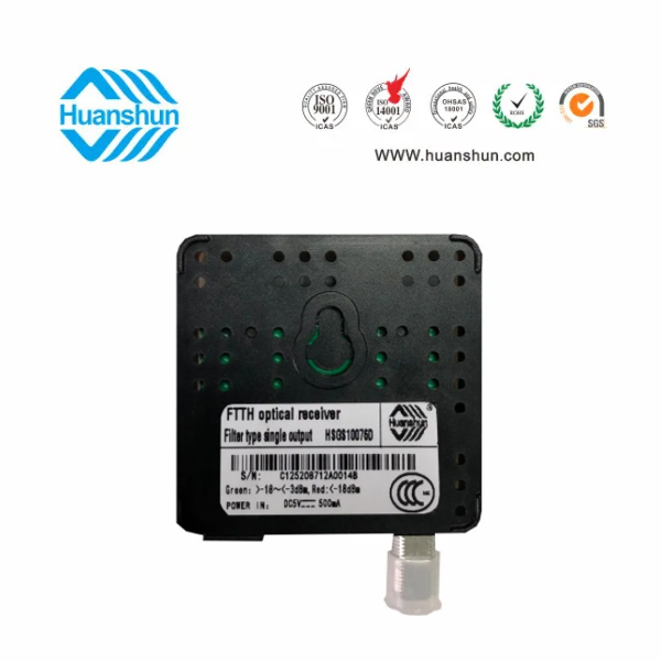 環順的HSGS10076D光接收機是專為CATV網絡的FTTH 應用而設計的入戶濾波型光接收機。具有結構小巧緊湊、式樣美觀、 應用方便等 特點,在高達1000Mhz的帶寬下能夠提供穩定的輸出電平和優異的性能指標,具有極寬的光功率工作范圍。