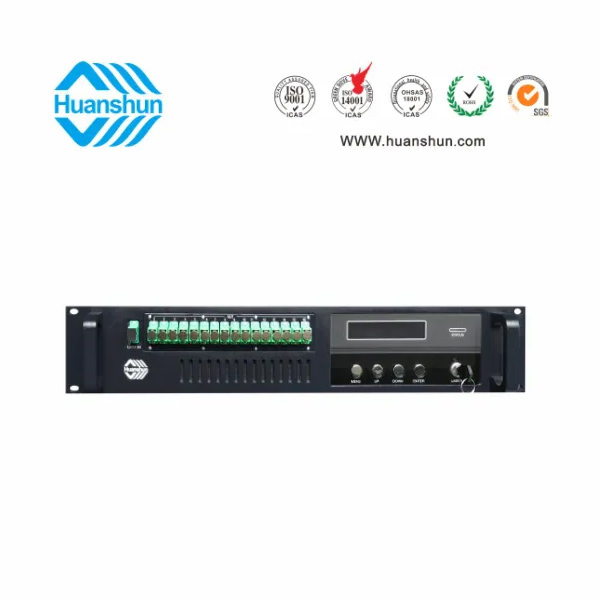 19 " 2U/3U標準機箱,-5 ~ +10 d Bm輸入,16路標稱規格(16、17、18、19、20、21、22、23、24dBm)放大輸出,并支持下調-2dB,安全連接模式,NF ≤ 5dB(0dBm時);內置FWDM合波器,插播損耗 ≤ 1dB;雙模塊熱插撥電源,AC90 ~ 255V或DC-48V供電,RJ45標準網管(支持SNMP、WEB)